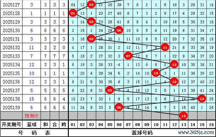 蓝球分析:上期开出蓝球号码06,蓝球遗漏值为41,温冷蓝球近期开出比例较高,本期防冷码蓝球接续解冻,参考蓝球号码13。